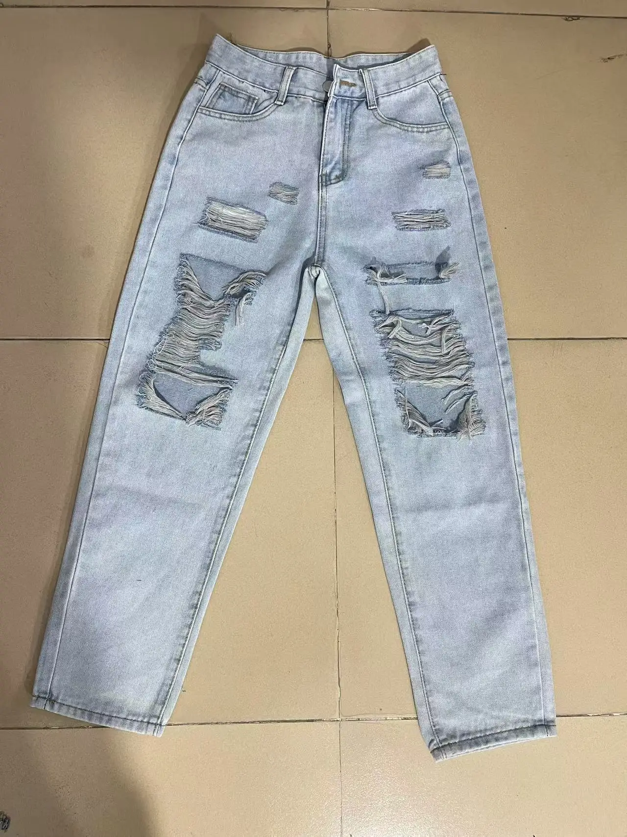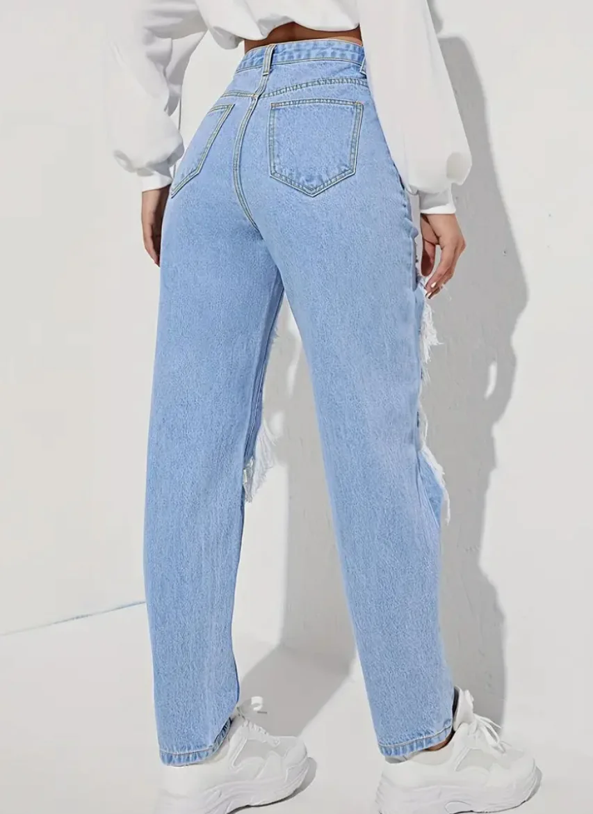 Naisten kevään ja kesän suorat revityt housut